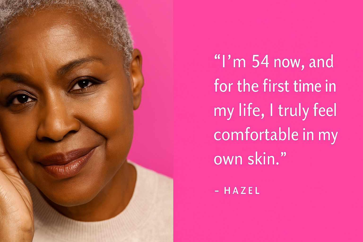 This one comes from Hazel, a radiant woman in her fifties, whose perspective on body image, self-acceptance, and true beauty is as honest as it is inspiring.